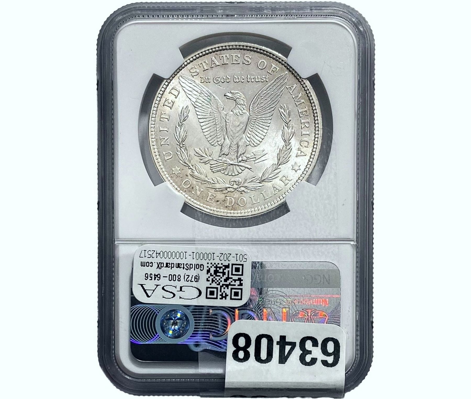 e. Coins sold referencing a third-party grading service are sold “AS IS” without any express or implied warranty, except for a guarantee by GSA that they are genuine. Removal or alteration of the holder, voids all of Bidder’s claims concerning that Product. Certain warranties may be available from the grading services and Bidders are referred to them for further details: Numismatic Guaranty Corporation (NGC), PO Box 4776, Sarasota, FL 34230, www.ngccoin.com/services/writtenguarantee.asp; Professional Coin Grading Services (PCGS), PO Box 9458, Newport Beach, CA 92658, www.pcgs.com/guarantee.html; ANACS, 6555 S. Kenton St., Ste. 303, Englewood, CO 80111; and Independent Coin Grading Co. (ICG), 7901 East Bellview, Ave., Suite 50, Englewood, CO 80111.