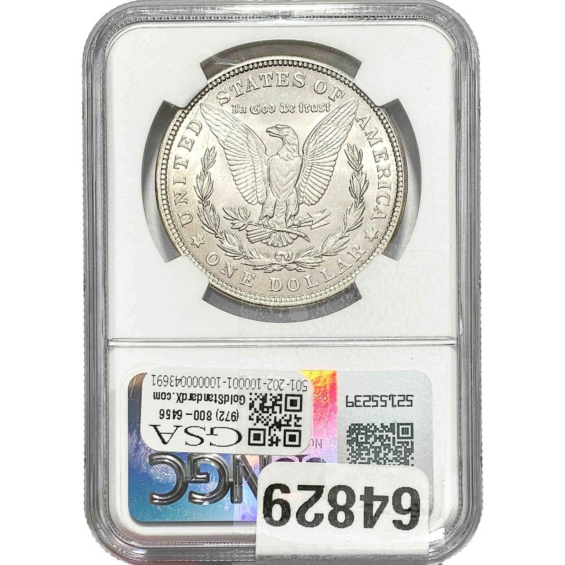 e. Coins sold referencing a third-party grading service are sold “AS IS” without any express or implied warranty, except for a guarantee by GSA that they are genuine. Removal or alteration of the holder, voids all of Bidder’s claims concerning that Product. Certain warranties may be available from the grading services and Bidders are referred to them for further details: Numismatic Guaranty Corporation (NGC), PO Box 4776, Sarasota, FL 34230, www.ngccoin.com/services/writtenguarantee.asp; Professional Coin Grading Services (PCGS), PO Box 9458, Newport Beach, CA 92658, www.pcgs.com/guarantee.html; ANACS, 6555 S. Kenton St., Ste. 303, Englewood, CO 80111; and Independent Coin Grading Co. (ICG), 7901 East Bellview, Ave., Suite 50, Englewood, CO 80111.