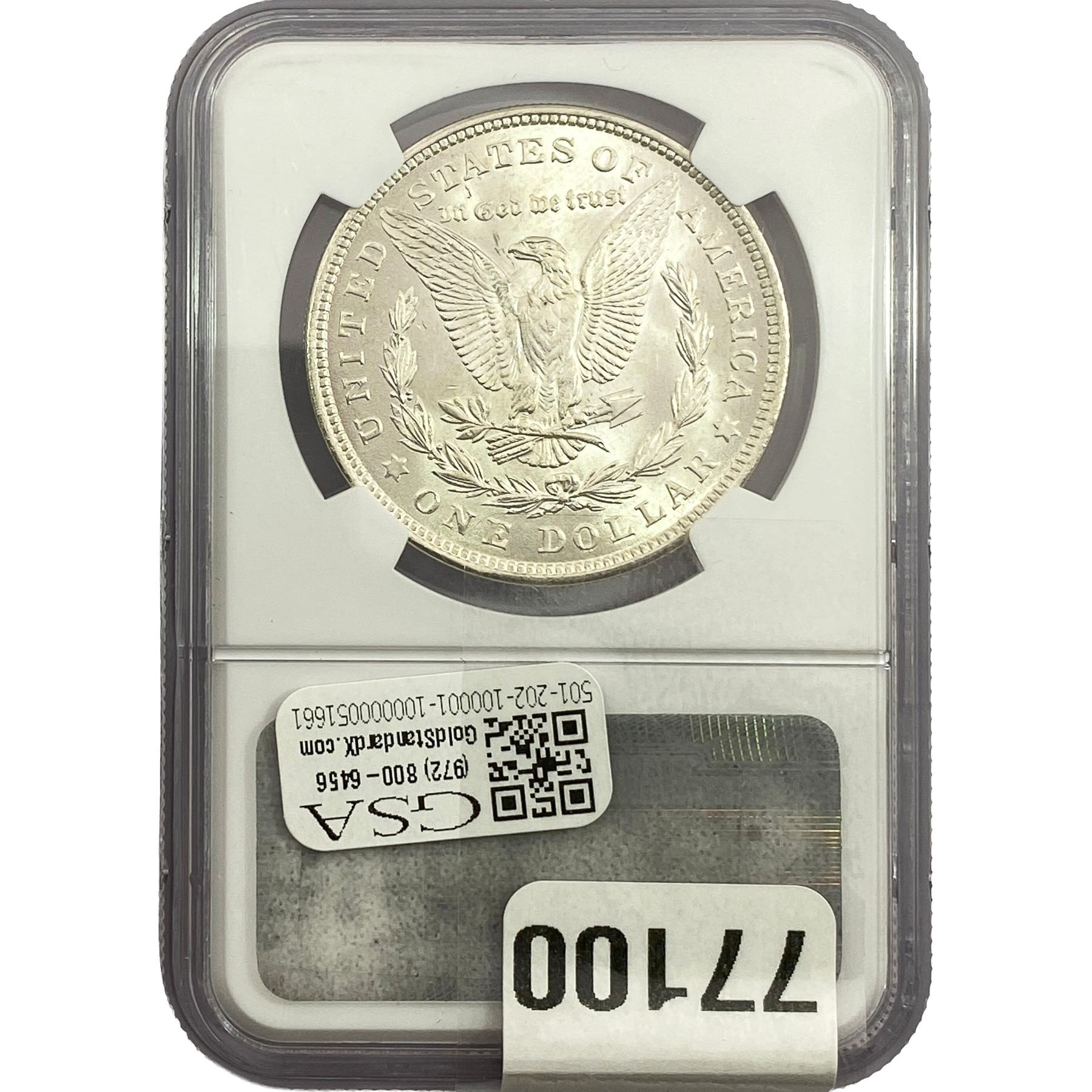 e. Coins sold referencing a third-party grading service are sold “AS IS” without any express or implied warranty, except for a guarantee by GSA that they are genuine. Removal or alteration of the holder, voids all of Bidder’s claims concerning that Product. Certain warranties may be available from the grading services and Bidders are referred to them for further details: Numismatic Guaranty Corporation (NGC), PO Box 4776, Sarasota, FL 34230, www.ngccoin.com/services/writtenguarantee.asp; Professional Coin Grading Services (PCGS), PO Box 9458, Newport Beach, CA 92658, www.pcgs.com/guarantee.html; ANACS, 6555 S. Kenton St., Ste. 303, Englewood, CO 80111; and Independent Coin Grading Co. (ICG), 7901 East Bellview, Ave., Suite 50, Englewood, CO 80111.