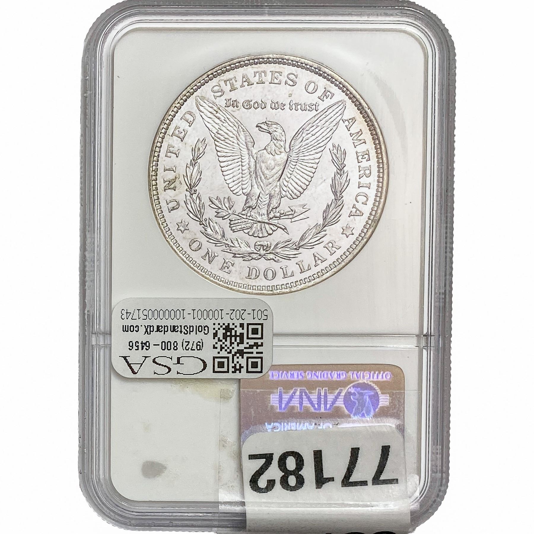 e. Coins sold referencing a third-party grading service are sold “AS IS” without any express or implied warranty, except for a guarantee by GSA that they are genuine. Removal or alteration of the holder, voids all of Bidder’s claims concerning that Product. Certain warranties may be available from the grading services and Bidders are referred to them for further details: Numismatic Guaranty Corporation (NGC), PO Box 4776, Sarasota, FL 34230, www.ngccoin.com/services/writtenguarantee.asp; Professional Coin Grading Services (PCGS), PO Box 9458, Newport Beach, CA 92658, www.pcgs.com/guarantee.html; ANACS, 6555 S. Kenton St., Ste. 303, Englewood, CO 80111; and Independent Coin Grading Co. (ICG), 7901 East Bellview, Ave., Suite 50, Englewood, CO 80111.