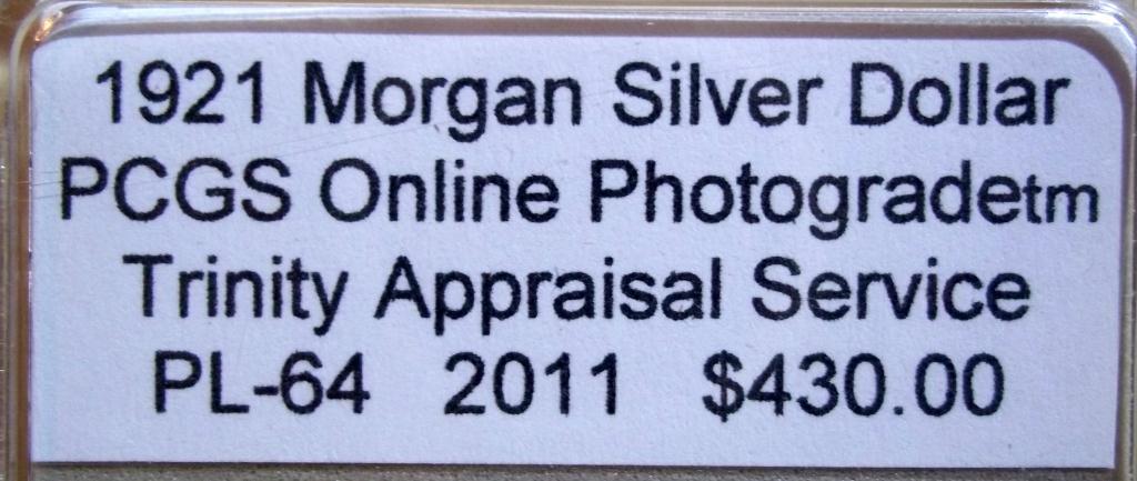 PCGS Online Photograde(tm) PL-64. Appraised at $430.00 by a Certified G.I.A. Appraiser from Trinity Appraisal Service, Control# F035252.