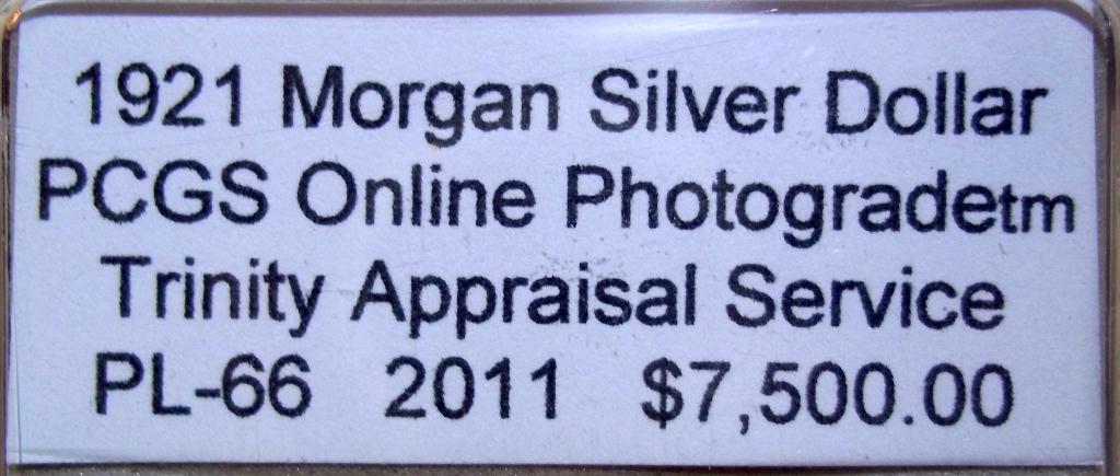 PCGS Online Photograde(tm) PL-66 Appraised at $7,500.00 by a Certified G.I.A. Appraiser from Trinity Appraisal Service, Control# F035248. INCLUDES APPRAISAL