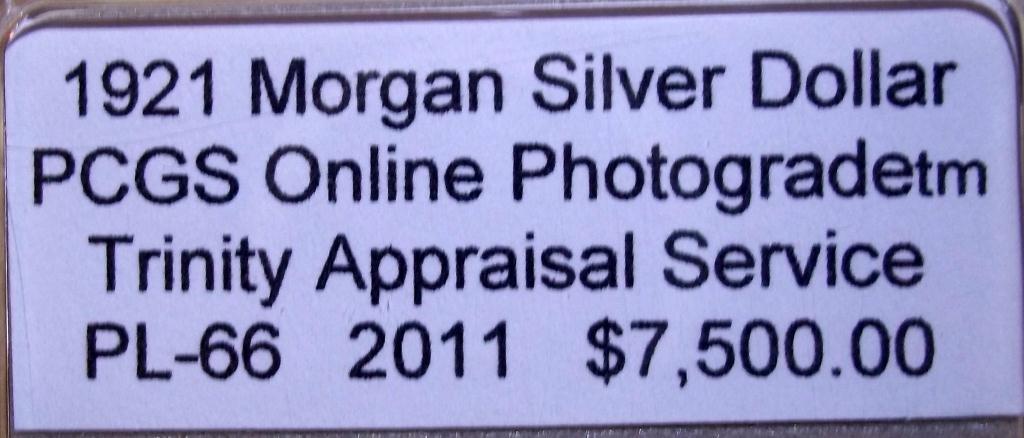 PCGS Online Photograde(tm) PL-66 Appraised at $7,500.00 by a Certified G.I.A. Appraiser from Trinity Appraisal Service, Control# F035396.