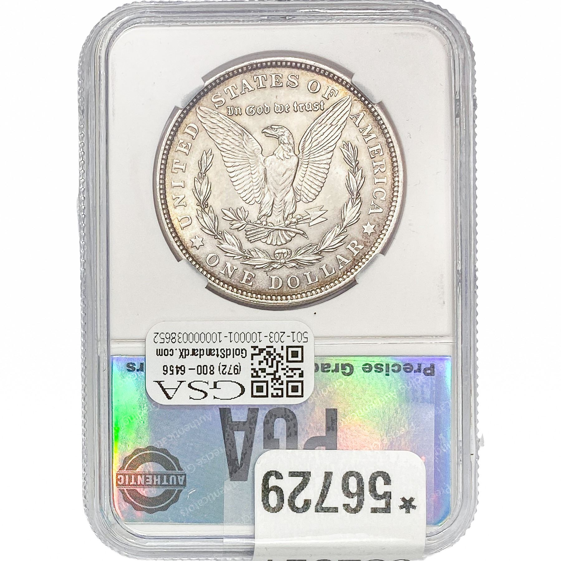 e. Coins sold referencing a third-party grading service are sold “AS IS” without any express or implied warranty, except for a guarantee by GSA that they are genuine. Removal or alteration of the holder, voids all of Bidder’s claims concerning that Product. Certain warranties may be available from the grading services and Bidders are referred to them for further details: Numismatic Guaranty Corporation (NGC), PO Box 4776, Sarasota, FL 34230, www.ngccoin.com/services/writtenguarantee.asp; Professional Coin Grading Services (PCGS), PO Box 9458, Newport Beach, CA 92658, www.pcgs.com/guarantee.html; ANACS, 6555 S. Kenton St., Ste. 303, Englewood, CO 80111; and Independent Coin Grading Co. (ICG), 7901 East Bellview, Ave., Suite 50, Englewood, CO 80111.