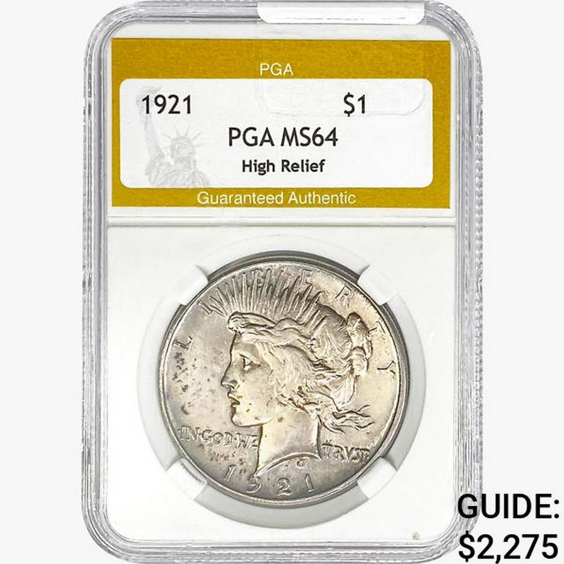 1921 Morgan Silver Dollar PGA MS64 High Relief