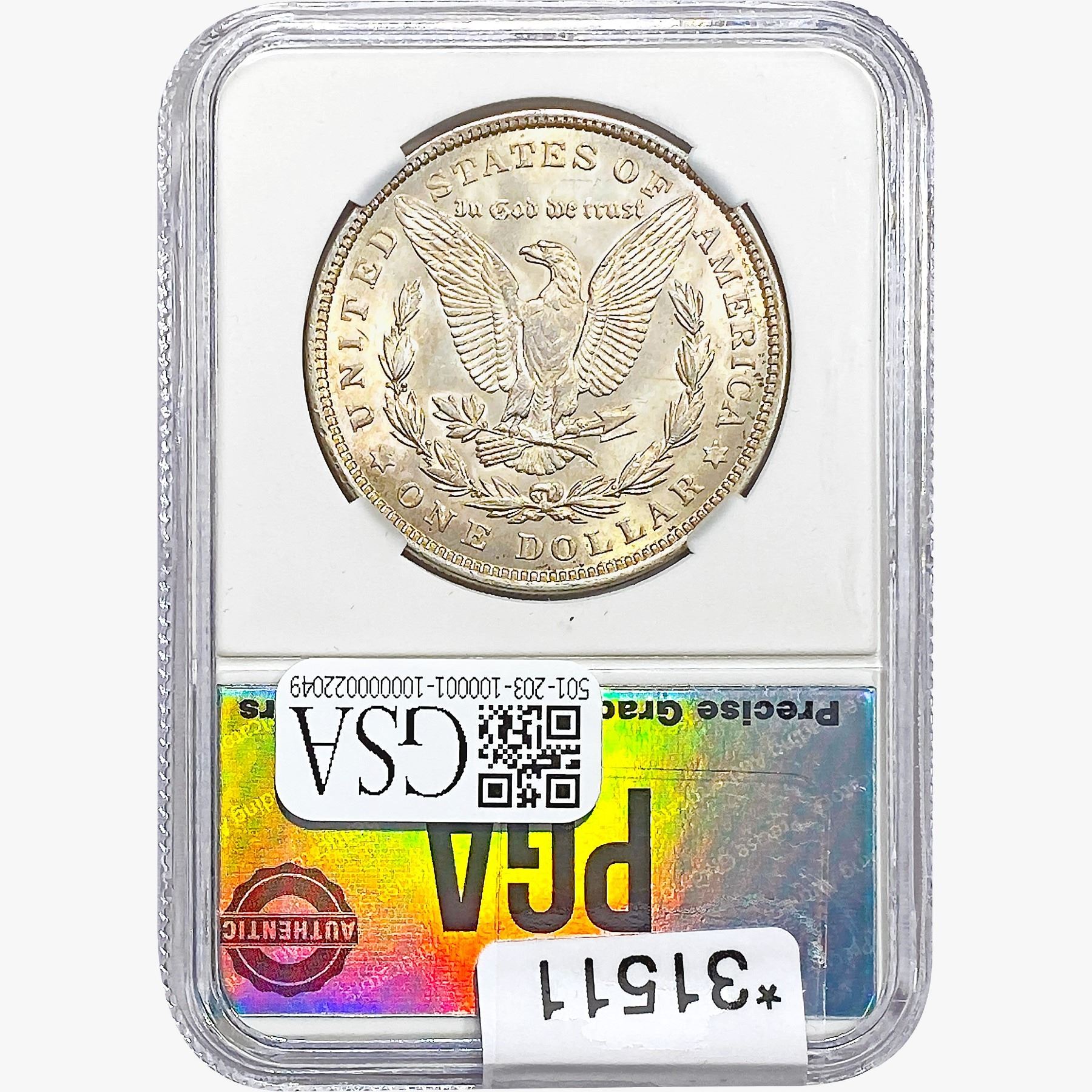 COINS AND CURRENCY LISTED IN GSA’S CATALOG AS GRADED AND ENCAPSULATED BY PCGS, NGC, ANACS, ICG, PCGS CURRENCY, PMG, PCGS BANKNOTE GRADING, CMC OR ANY OTHER THIRD-PARTY GRADING SERVICE ARE LIKEWISE SOLD “AS-IS” EXCEPT AS EXPRESSLY SET FORTH HEREIN. ALL THIRD-PARTY GRADING SERVICE GUARANTEES, INCLUDING AUTHENTICITY, ARE THE SOLE RESPONSIBILITY OF THE THIRD-PARTY GRADING SERVICE AND NOT WARRANTIES OR GUARANTEES OF GSA. BIDDERS SHOULD CONTACT THESE THIRD-PARTY GRADING SERVICES DIRECTLY WITH RESPECT TO ANY CLAIMS OR QUESTIONS THEY MAY HAVE CONCERNING THEIR GUARANTEES AND WARRANTIES. BIDDERS ACKNOWLEDGE AND AGREE THAT AUCTIONEER IS NOT BOUND BY OR LIABLE FOR ANY OPINION OR CERTIFICATION BY ANY THIRD-PARTY GRADING SERVICE. REMOVAL OF A PRODUCT FROM ITS PROTECTIVE CASING OR HOLDER OR ALTERATION OF ANY COIN HOLDER WAIVES ALL RIGHTS CONCERNING THE PRODUCT CONTAINED THEREIN.
