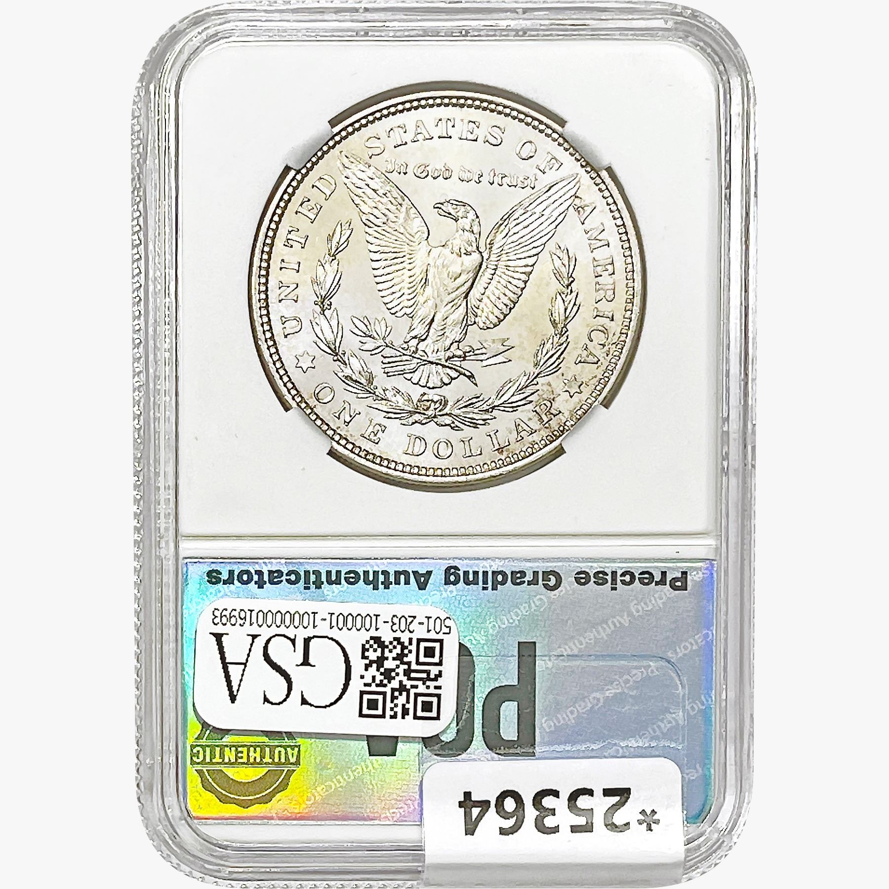 COINS AND CURRENCY LISTED IN GSA’S CATALOG AS GRADED AND ENCAPSULATED BY PCGS, NGC, ANACS, ICG, PCGS CURRENCY, PMG, PCGS BANKNOTE GRADING, CMC OR ANY OTHER THIRD-PARTY GRADING SERVICE ARE LIKEWISE SOLD “AS-IS” EXCEPT AS EXPRESSLY SET FORTH HEREIN. ALL THIRD-PARTY GRADING SERVICE GUARANTEES, INCLUDING AUTHENTICITY, ARE THE SOLE RESPONSIBILITY OF THE THIRD-PARTY GRADING SERVICE AND NOT WARRANTIES OR GUARANTEES OF GSA. BIDDERS SHOULD CONTACT THESE THIRD-PARTY GRADING SERVICES DIRECTLY WITH RESPECT TO ANY CLAIMS OR QUESTIONS THEY MAY HAVE CONCERNING THEIR GUARANTEES AND WARRANTIES. BIDDERS ACKNOWLEDGE AND AGREE THAT AUCTIONEER IS NOT BOUND BY OR LIABLE FOR ANY OPINION OR CERTIFICATION BY ANY THIRD-PARTY GRADING SERVICE. REMOVAL OF A PRODUCT FROM ITS PROTECTIVE CASING OR HOLDER OR ALTERATION OF ANY COIN HOLDER WAIVES ALL RIGHTS CONCERNING THE PRODUCT CONTAINED THEREIN.