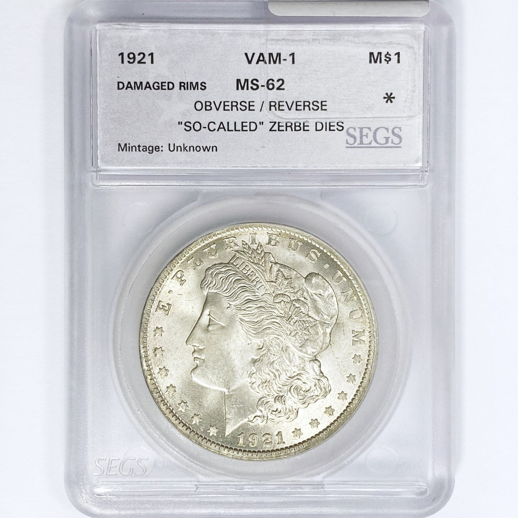 1921 Morgan Silver Dollar SEGS MS62 VAM-1
