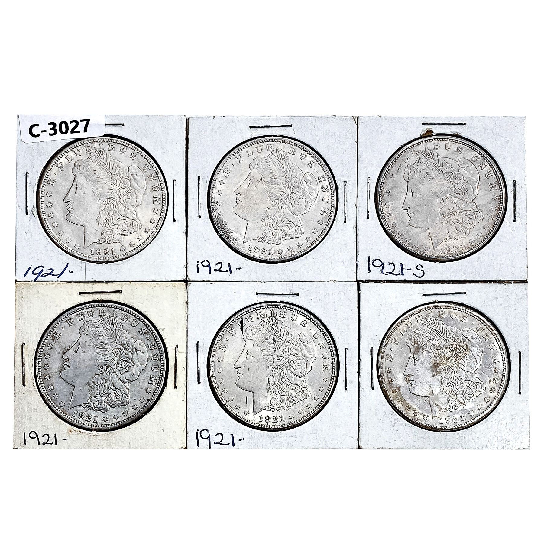 1921 Morgan Silver Dollars; Diff. Mints [6 Coins]
