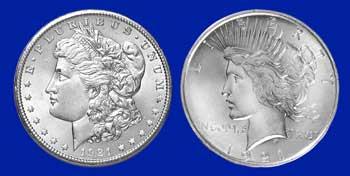 A lot of 2 collectible US Minted Silver Dollars. Morgan UNC- Peace Fine-