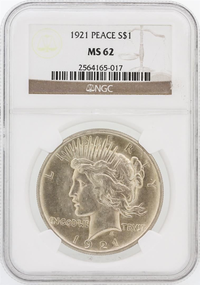 One 1921 NGC MS62 Peace Silver Dollar. NGC Certified.