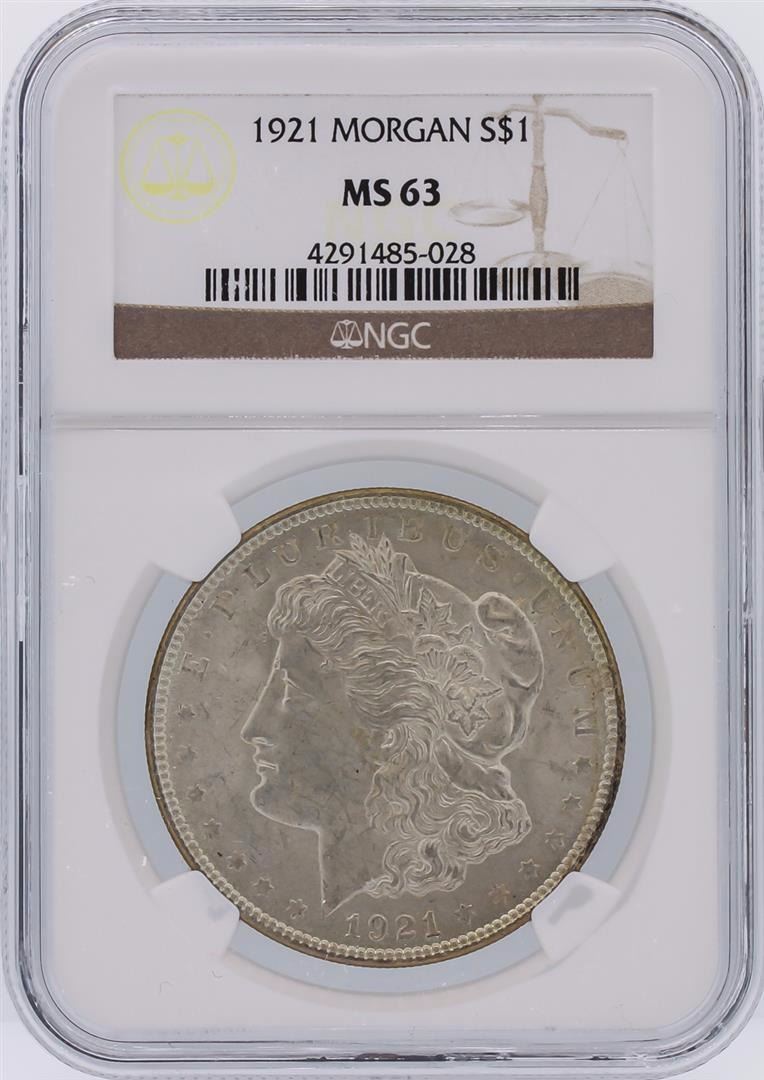 One 1921 NGC MS63 Morgan Silver Dollar. NGC Certified.