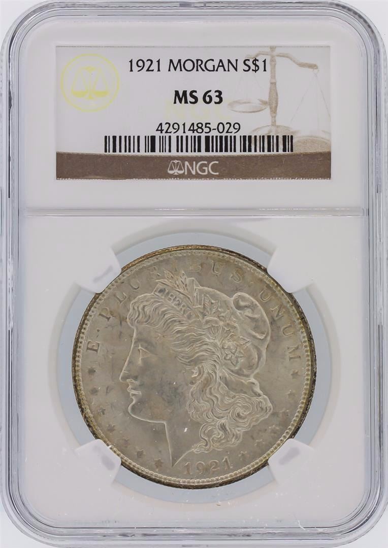 One 1921 NGC MS63 Morgan Silver Dollar. NGC Certified.
