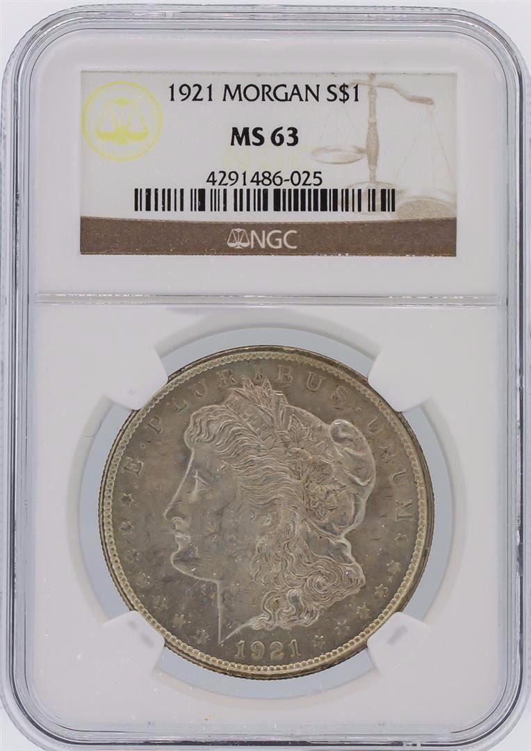 One 1921 NGC MS63 Morgan Silver Dollar. NGC Certified.