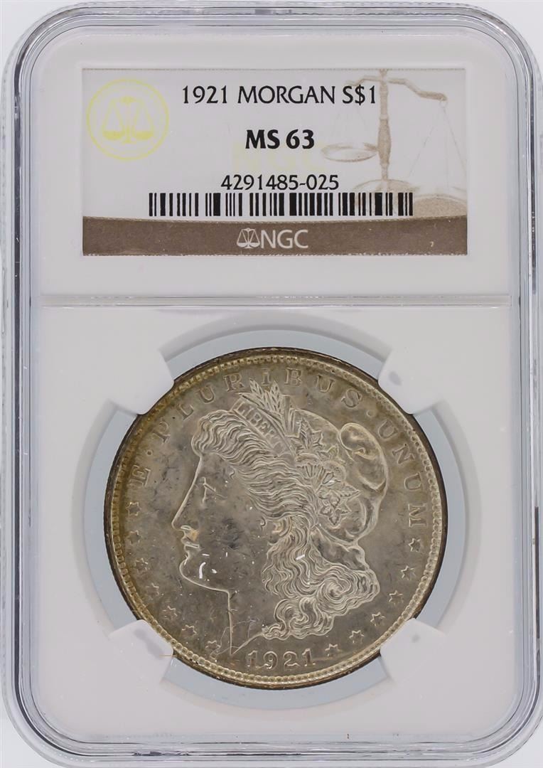 One 1921 NGC MS63 Morgan Silver Dollar. NGC Certified.