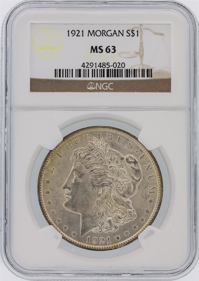One 1921 NGC MS63 Morgan Silver Dollar. NGC Certified.