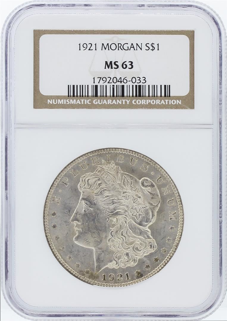 One 1921 NGC MS63 Morgan Silver Dollar. NGC Certified.