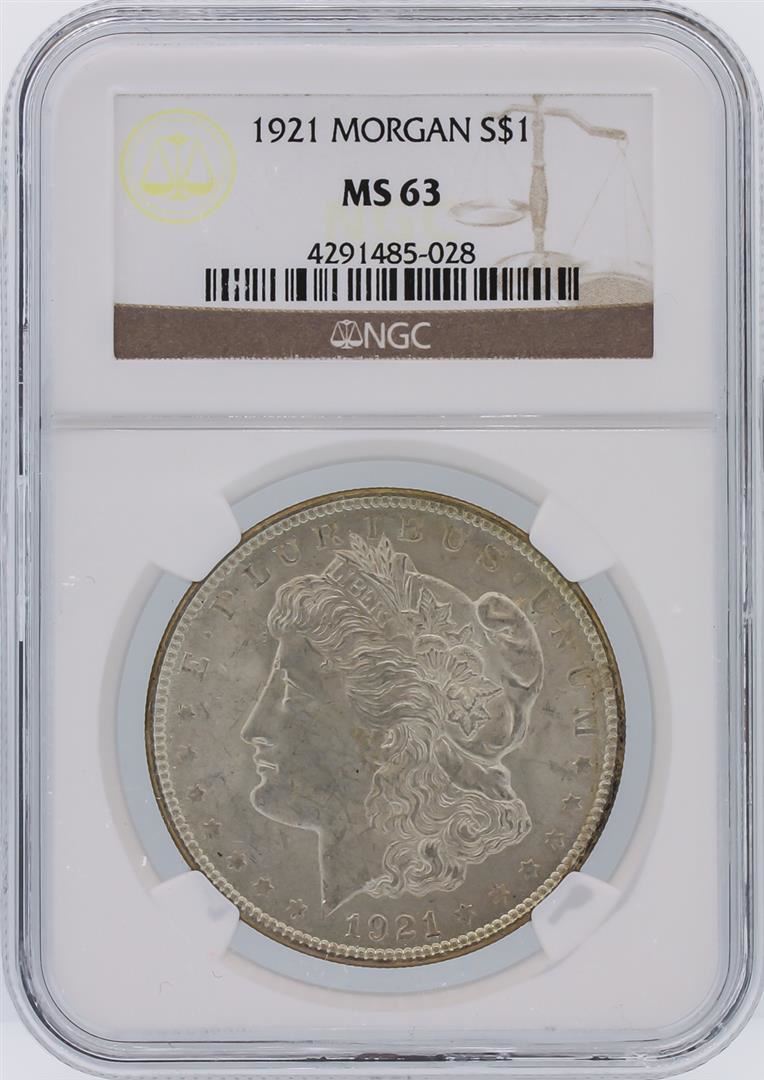 One 1921 NGC MS63 Morgan Silver Dollar. NGC Certified.