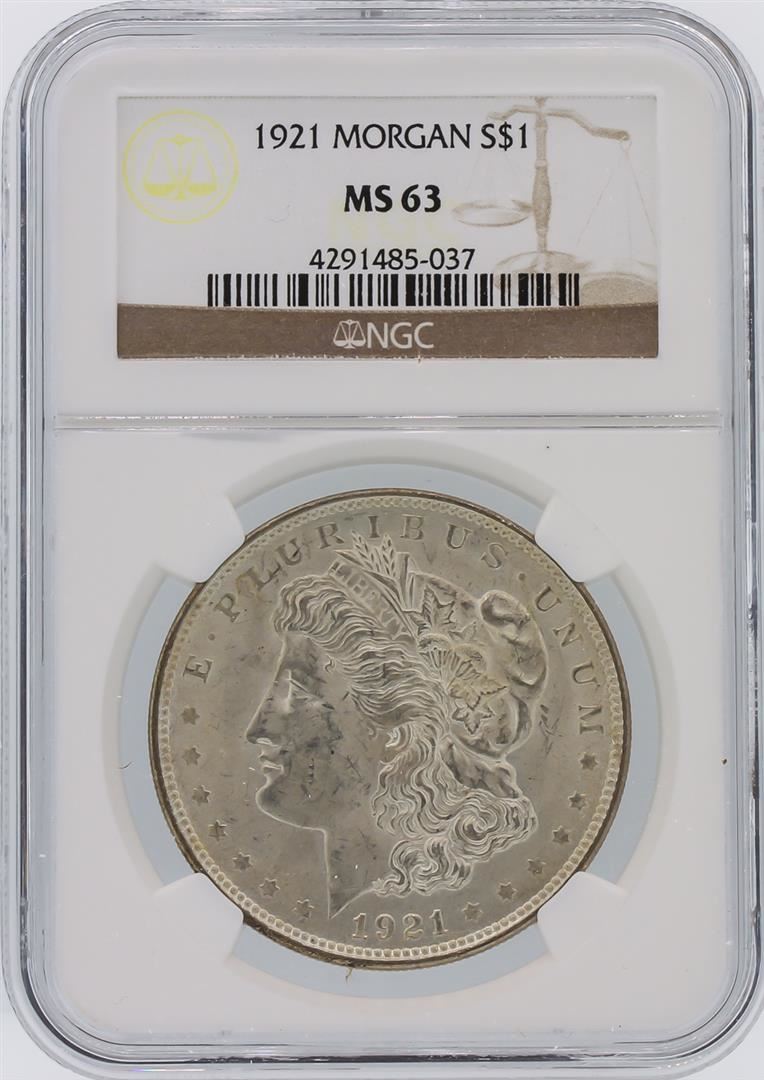 One 1921 NGC MS63 Morgan Silver Dollar. NGC Certified.