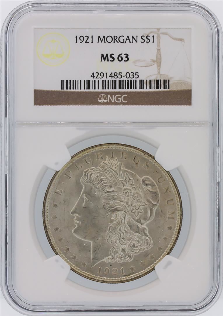 One 1921 NGC MS63 Morgan Silver Dollar. NGC Certified.
