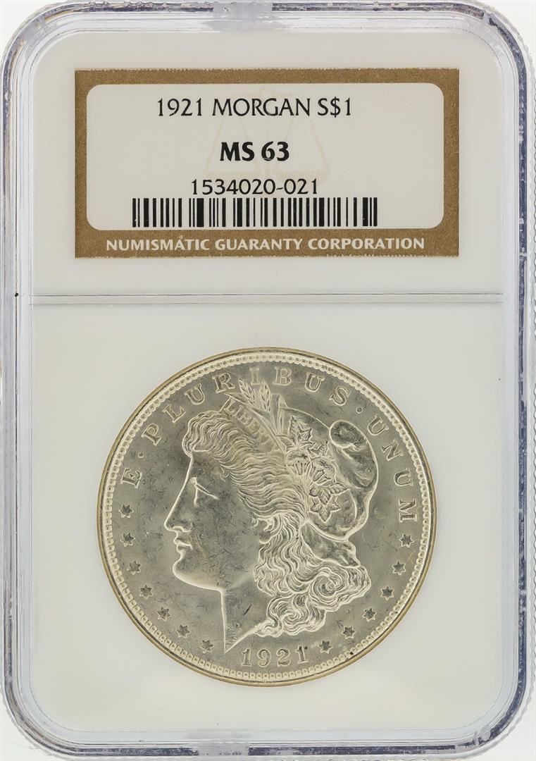 One 1921 NGC MS63 Morgan Silver Dollar. NGC Certified.