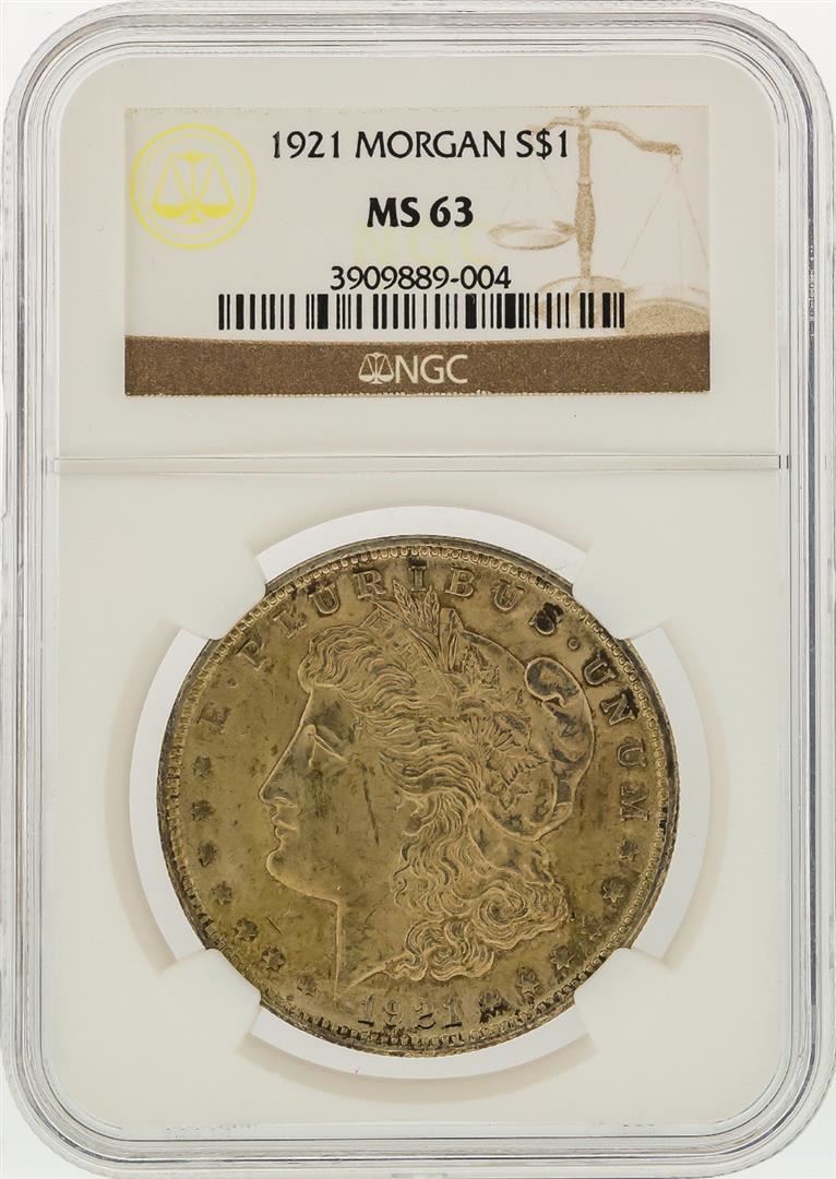One 1921 NGC MS63 Morgan Silver Dollar. NGC Certified.