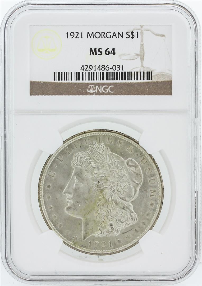 One 1921 NGC MS64 Morgan Silver Dollar. NGC Certified.