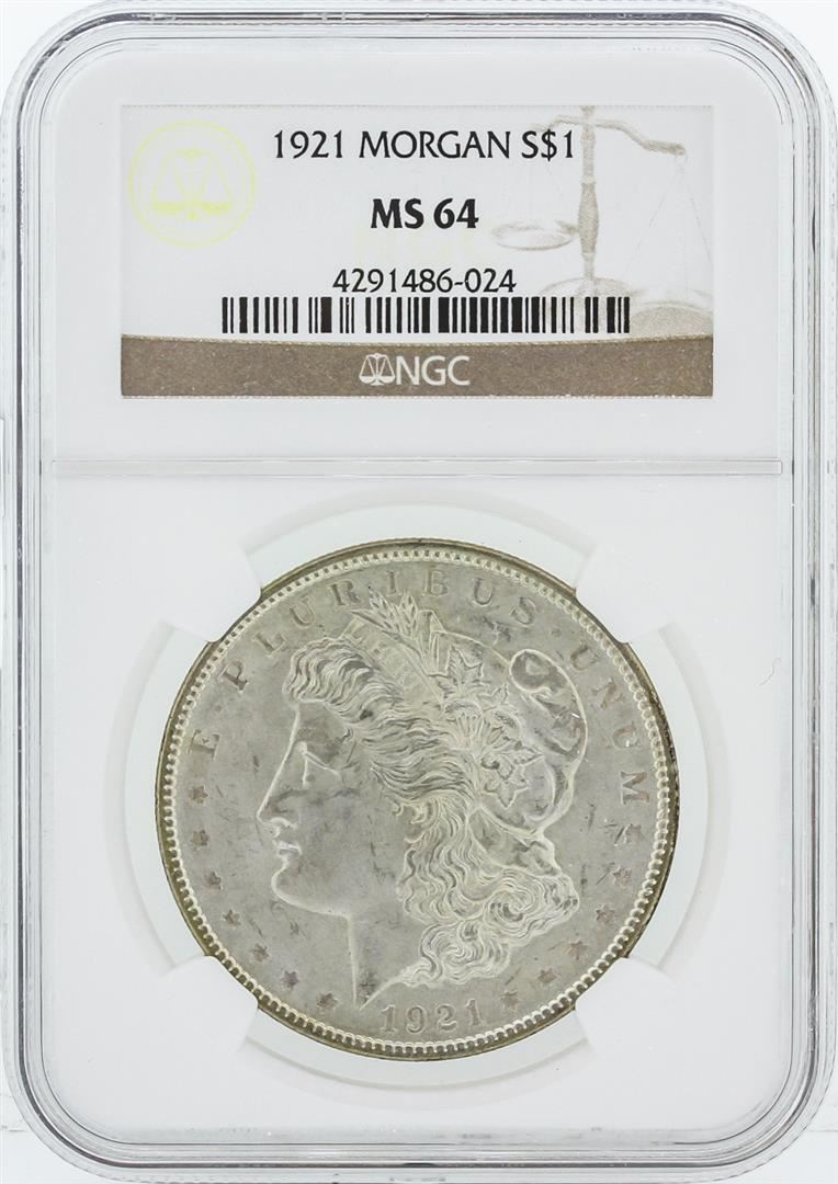 One 1921 NGC MS64 Morgan Silver Dollar. NGC Certified.