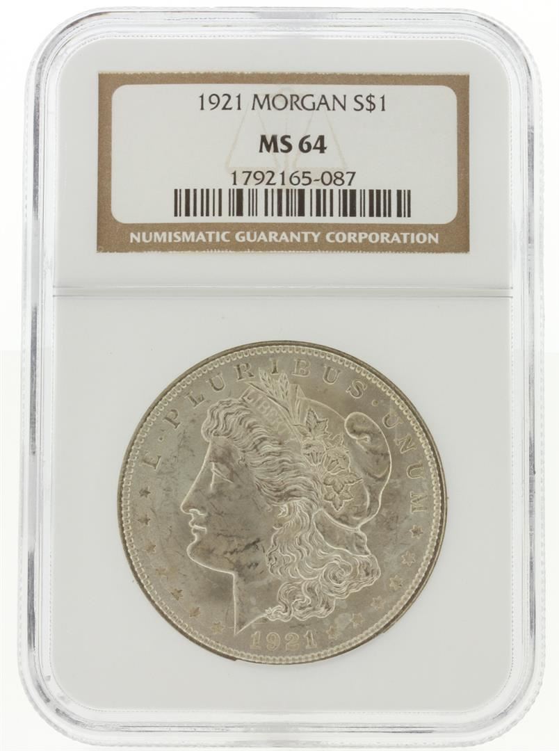One 1921 NGC MS64 Morgan Silver Dollar. NGC Certified.