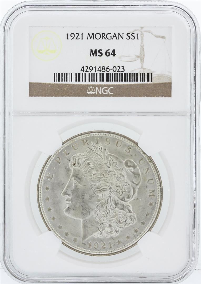 One 1921 NGC MS64 Morgan Silver Dollar. NGC Certified.