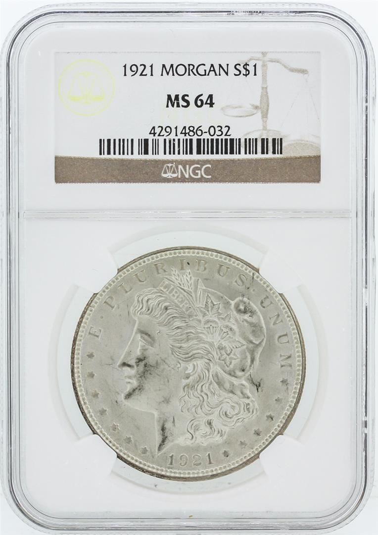 One 1921 NGC MS64 Morgan Silver Dollar. NGC Certified.