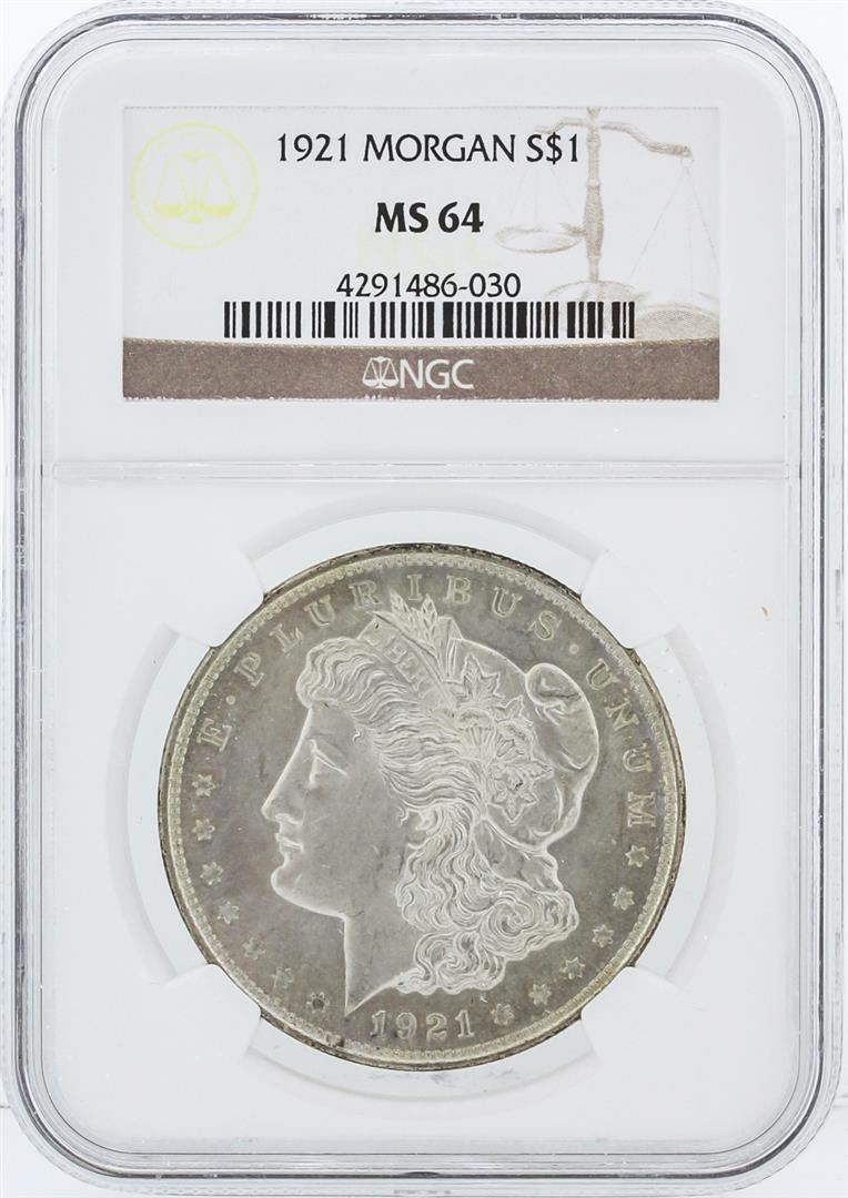 One 1921 NGC MS64 Morgan Silver Dollar. NGC Certified.