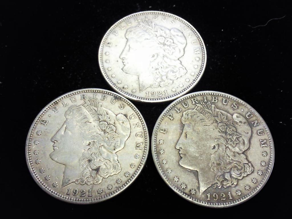 1921-P/D/S MORGAN SILVER DOLLARS 3 COINS