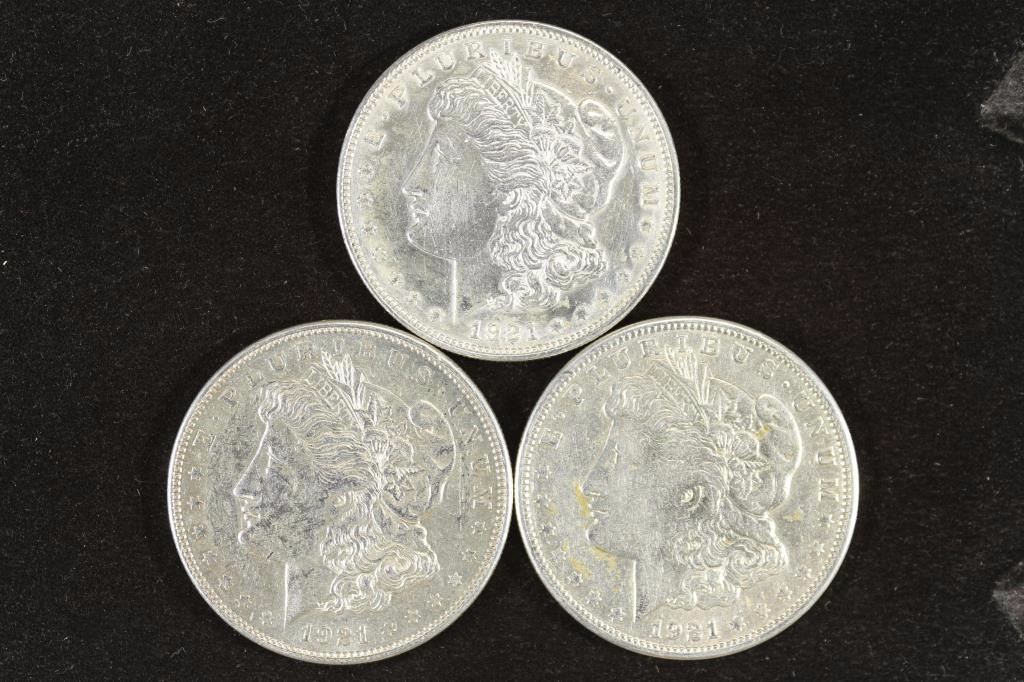 1921-P/D/S MORGAN SILVER DOLLARS AU/UNC
