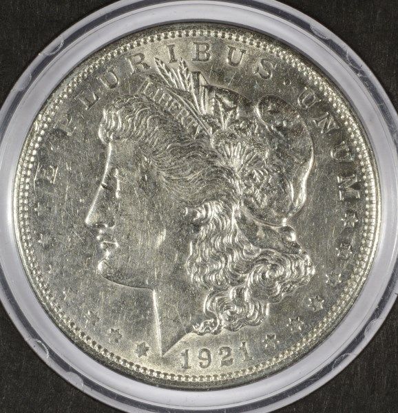 1921-P MORGAN SILVER DOLLAR, IN CAPSULE AND SLEEVE