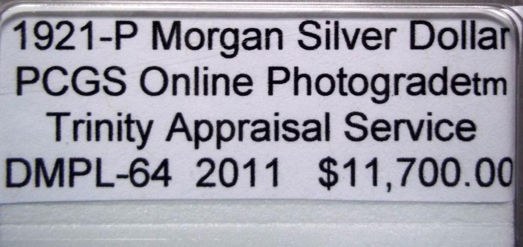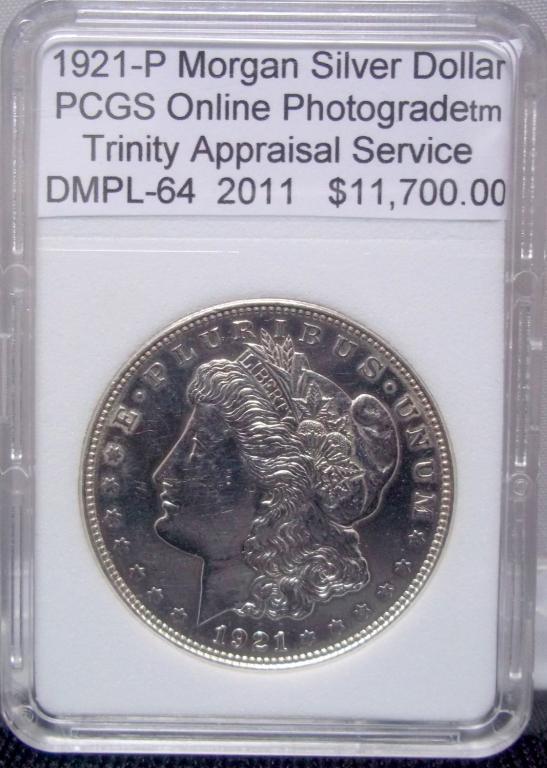 This beautiful 1921 P Morgan Silver Dollar has a PCGS Online Photograde tm DMPL-64 by Trinity Appraisal Service 2011. Control # F035116