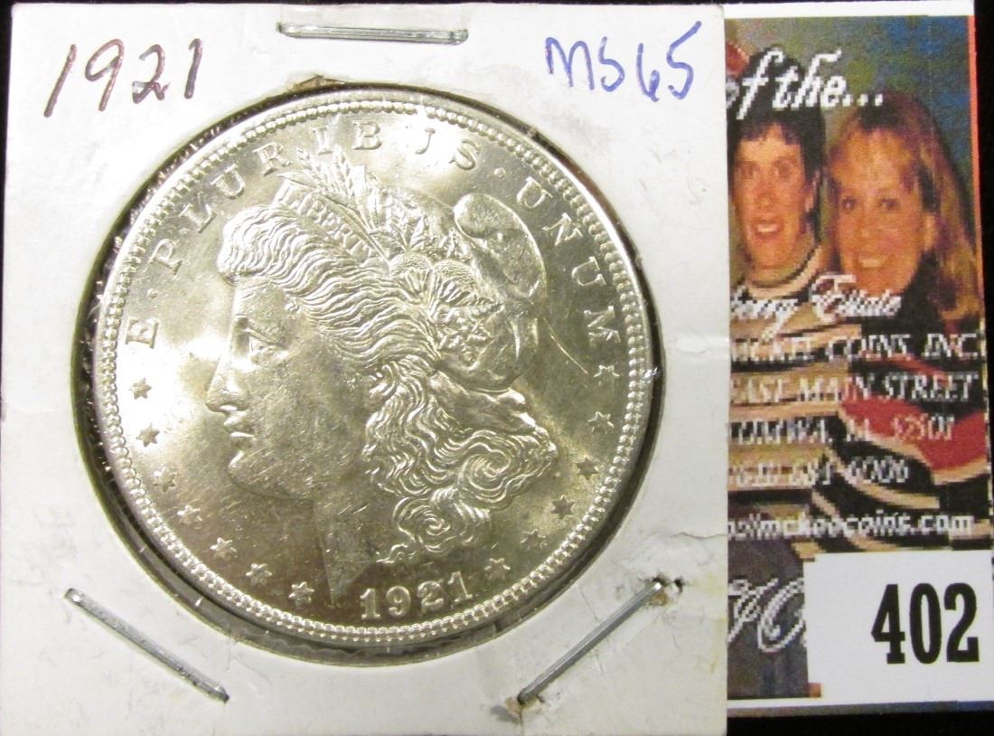 1921 P Morgan Silver Dollar, Gem Brilliant Uncirculated, MS65