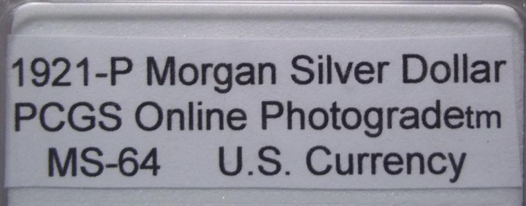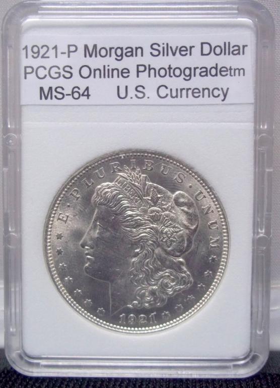 This beautiful 1921 P Morgan Silver Dollar has a PCGS Online Photograde tm MS-64. Control # F035130
