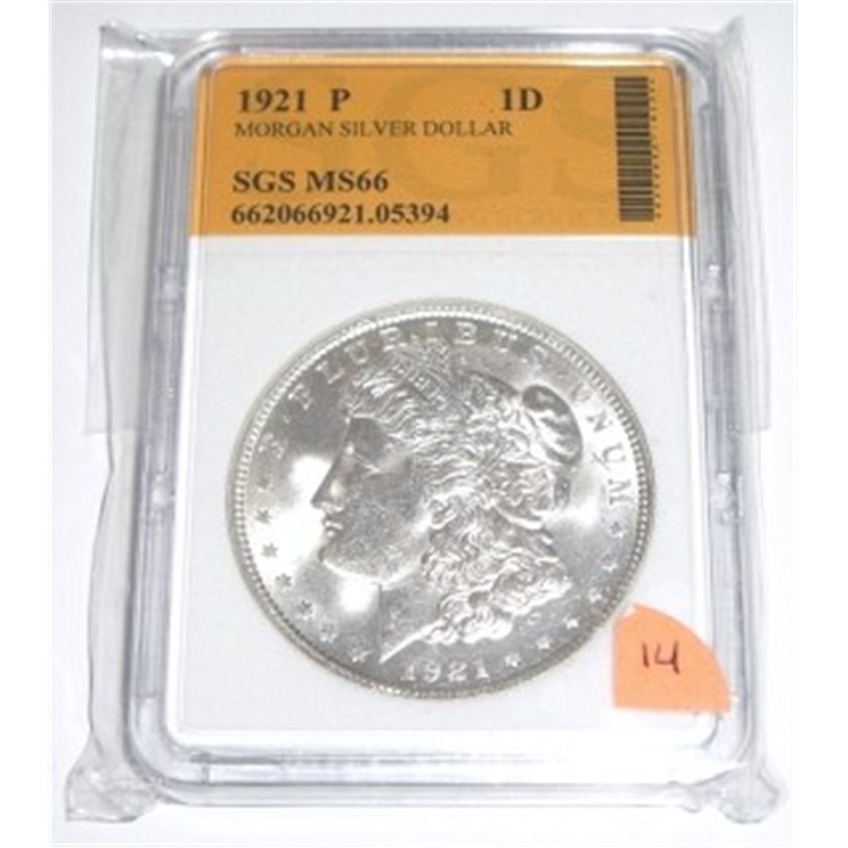 1921-P Morgan Silver Dollar *RARE CERTIFIED MS-66 by SGS*!! Serial # 662066921.05394. Coin comes with a Certificate of Authenticity!! ***Coin & Currency Grades, Conditions & Values are not Safe Deposit Coins Responsibilty. Grades, Conditions & Values are determined by Consigner(s) & Buyers***