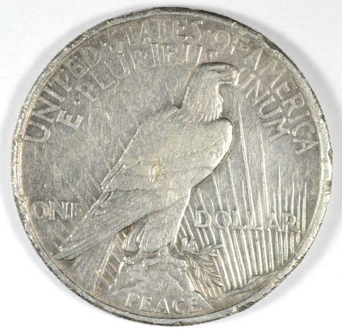 1921-P PEACE SILVER DOLLAR, XF RIM DAMAGE AND MARK ON LOWER BACK OF EAGLE