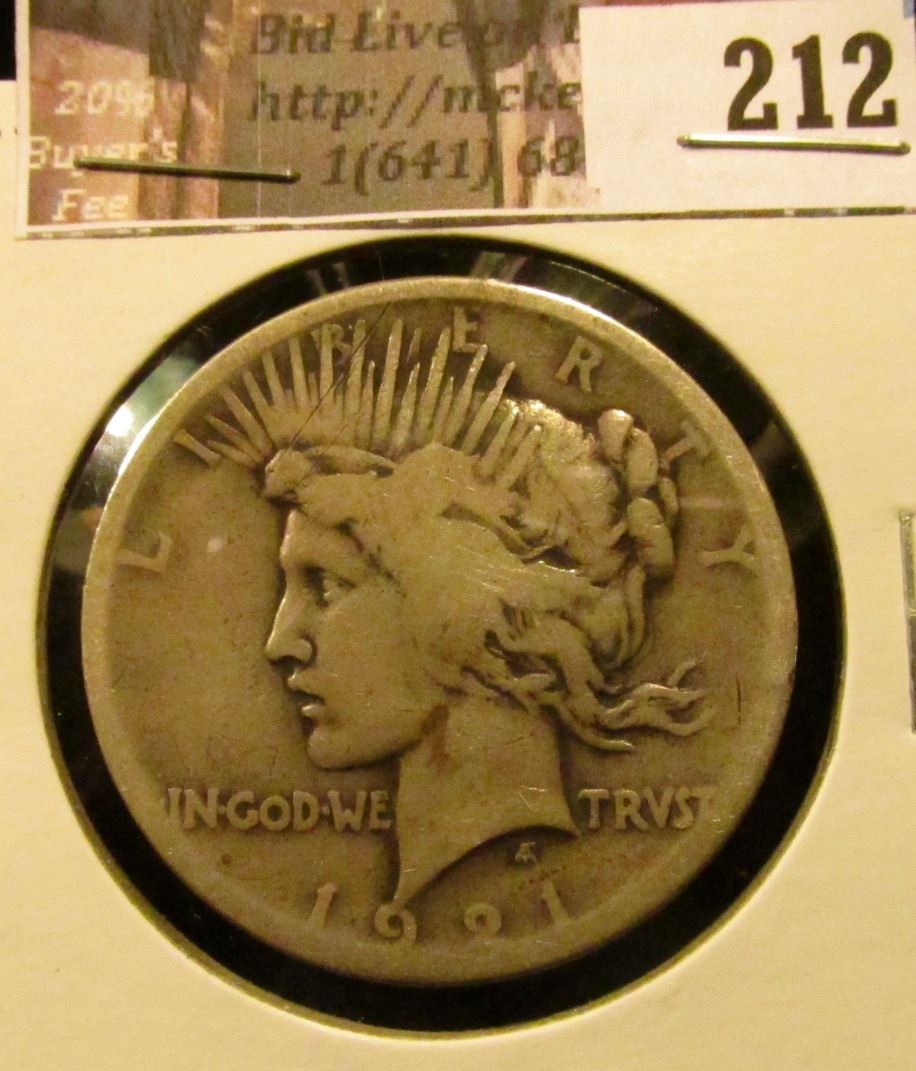 1921 P U.S. Peace Silver Dollar, Good-VG.