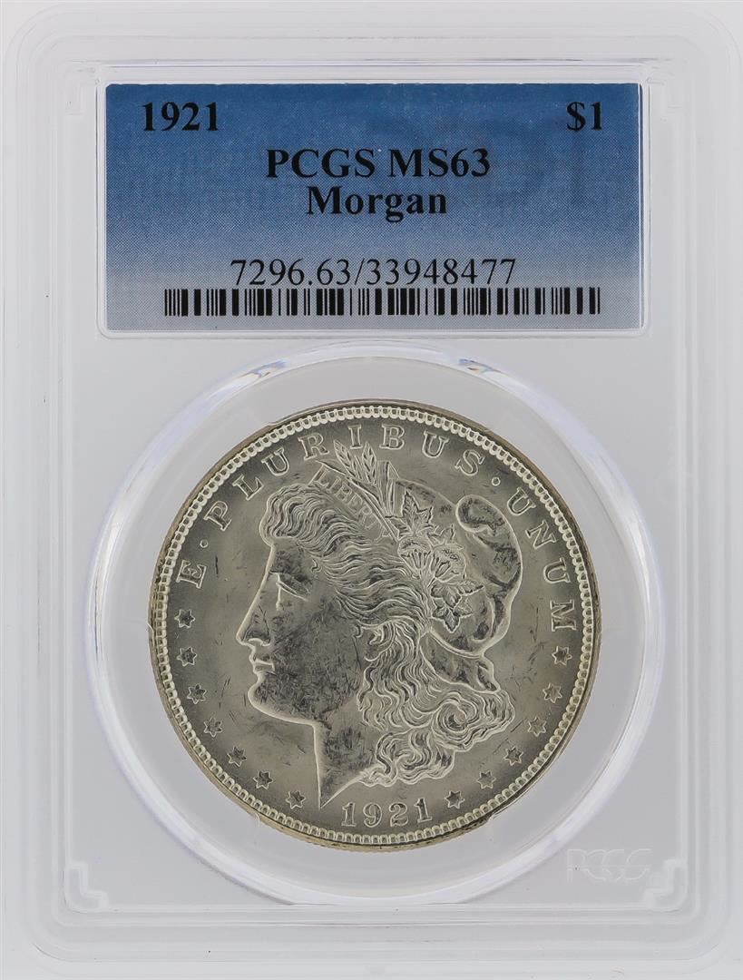 One 1921 PCGS MS63 Morgan Silver Dollar. PCGS Certified.