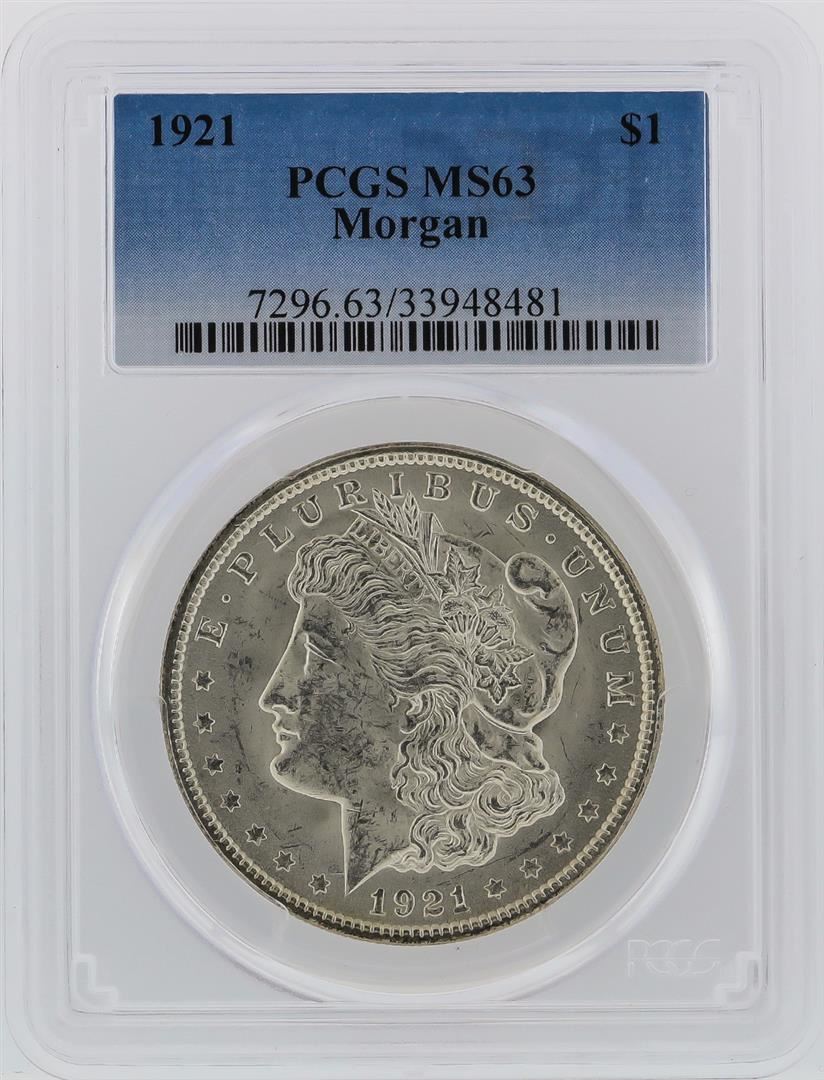 One 1921 PCGS MS63 Morgan Silver Dollar. PCGS Certified.