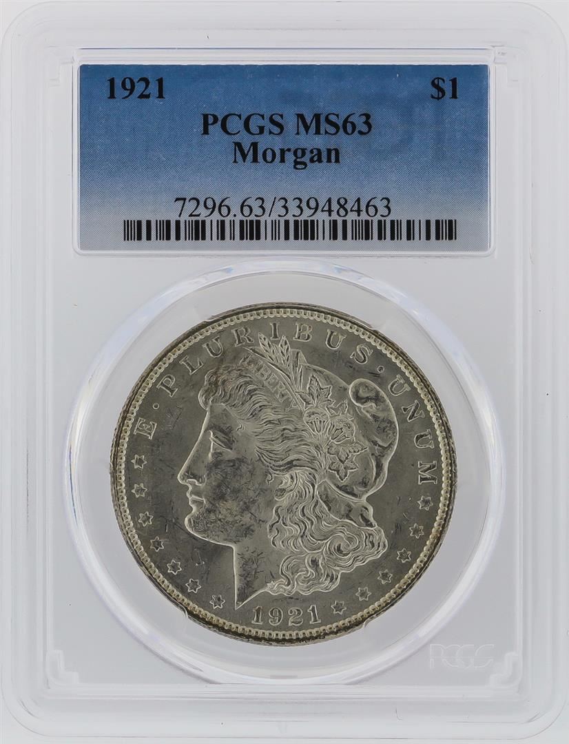 One 1921 PCGS MS63 Morgan Silver Dollar. PCGS Certified.