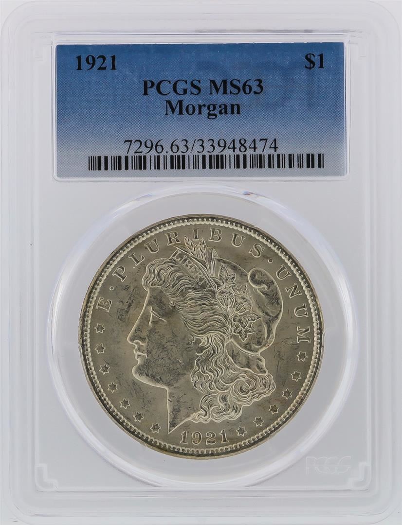 One 1921 PCGS MS63 Morgan Silver Dollar. PCGS Certified.