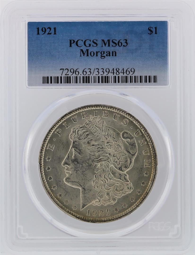 One 1921 PCGS MS63 Morgan Silver Dollar. PCGS Certified.