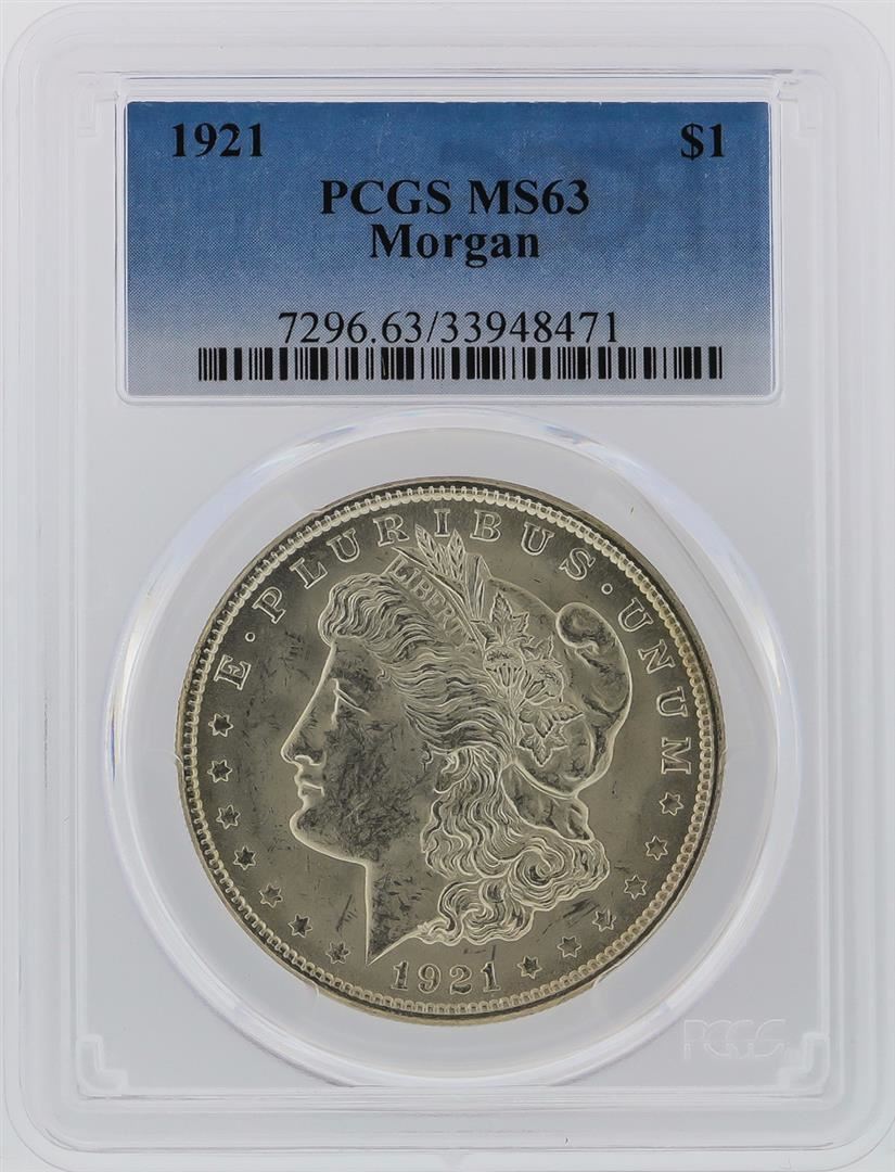 One 1921 PCGS MS63 Morgan Silver Dollar. PCGS Certified.