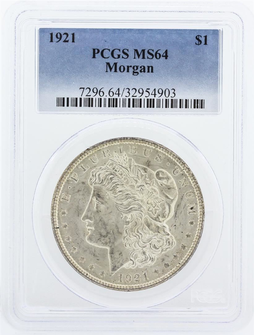 One 1921 PCGS MS64 Morgan Silver Dollar PCGS Certified.