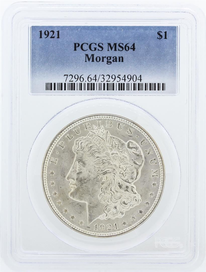 One 1921 PCGS MS64 Morgan Silver Dollar PCGS Certified.