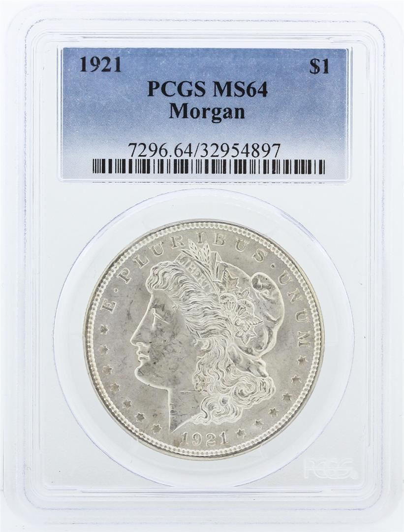One 1921 PCGS MS64 Morgan Silver Dollar PCGS Certified.